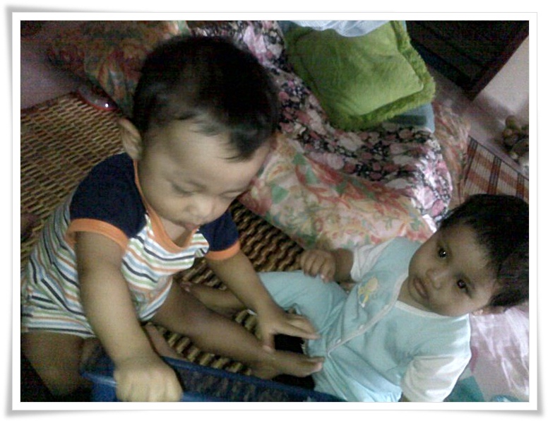 ari sabtu lepas abg as yang kat penang tuh balik, awisyh per lagi sukaria ler dia..ada ramai kawan2..tambahan plak ada sufi, anak abg as yang kecik sekali tuh..umor diaorang beza bulan jer..sufi bersalin 06.06.2010, awisyh plak 28.06.2010,so mmg dekatt sangat..maybe sbb tuh ler, dioarang agak rapat sikit walaupun lama tak jumpa..chemistry tu totap ada..suker tul as nengok awiysh main ngan kak long,kak ngah n sufi..mesree jer dia..maklumlah selama ni dia takder kawan..main pun ngan tok, ibu n ayah jer..sufi plak skrg ni dah boleh jalan dah, awiysh pun per lagi, dia pun sibuk nak tiru abg sufi dia..terkedek2 gak dia menapak..he..he..